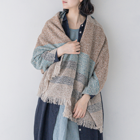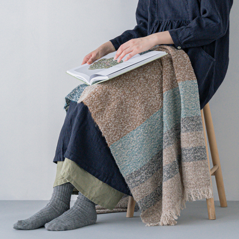 65×175㎝の大判ストールは、マフラーとしてだけでなく、室内でひざ掛けとしてもおすすめ。優しいカラーリングはインテリアにも馴染みやすく、ソファやベッドに置いておけば重宝しますよ◎