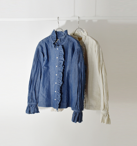 HAVERSACK|コットン 墨染ブロード バンドカラー フリル シャツ 322526-mn