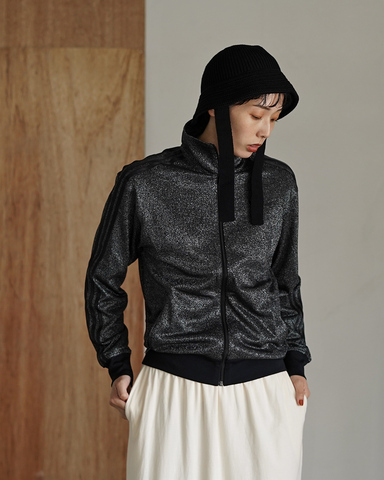 きらめくメタリック素材が印象的なトラックトップ。アディダスの定番「ファイアバード」をベースに、ラメ糸を織り込んだルレックス生地が華やかさをプラスしています。