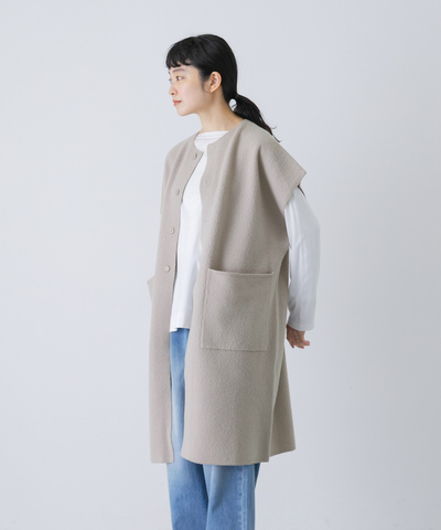 Soi-e|ジャガード リバーシブル ノーカラー ロング ジャケット 831426-yo
