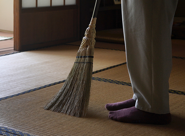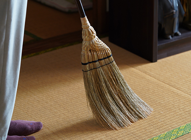 座敷箒で畳を掃いたときのサッ…サッ…という軽やかな音と草のやさしい香りは、掃除をしているとは思えない心地よさです。