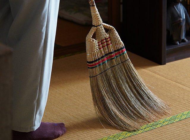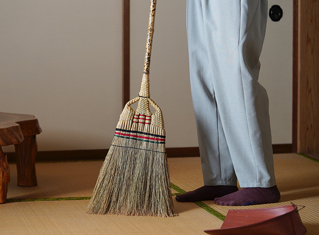 座敷箒で畳を掃いたときのサッ…サッ…という軽やかな音と草のやさしい香りは、掃除をしているとは思えない心地よさです。