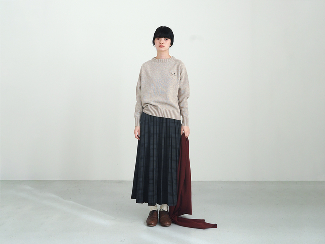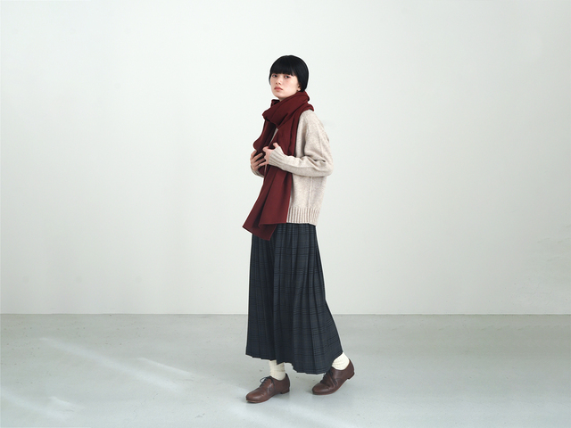 O'NEIL OF DUBLIN|aranciato別注 ウール プリーツ 巻きスカート ビッグピン付 チェック 無地 5073wp-fn