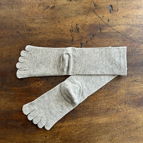弾力性と高い保温性のあるヤクウールとオーガニックのスーピマコットンで編まれた 5本指ソックスです。