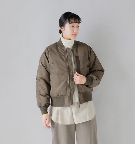 アメリカ軍の初期型MA-1フライトジャケットを彷彿とさせるダウンジャケットをアレンジした一枚。ミリタリーのタフさと、タウンユースの軽快さを兼ね備えたアイテムです。