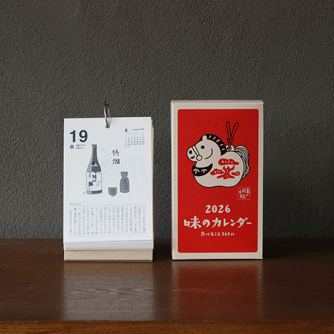昭和43年に創刊された食の月刊誌『味の手帖』が手がける「日めくり卓上カレンダー2026」です。「食べること365日」とタイトルの通り、365日美味しいに出会える日めくりカレンダーです。