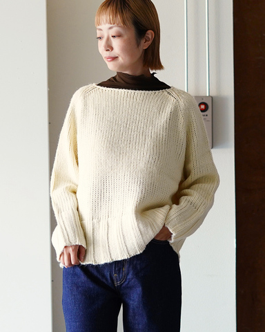 太めの糸で編み上げたニットは、シンプルながら立体感のある表情が魅力です。