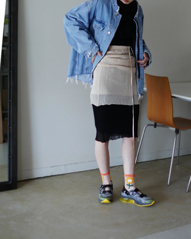 イッセイミヤケでキャリアを積んだデザイナー、香村茉友が手掛ける QUIITO(キイト)。古着をリデザインし、洋服を再生させることをコンセプトに提案。デニム・チノ・ミリタリー・ワークウェアなどの素体を元に、古着そのものの良さを生かしたタイムレスなデザインを追求しています。QUIITO は染まる前の生成りの、生糸(キイト)に由来し、自然の色や質感から湧き上がる、強く美しいイメージへの憧れと、原料・材料・資源を大切にしたいという思いが込められています。