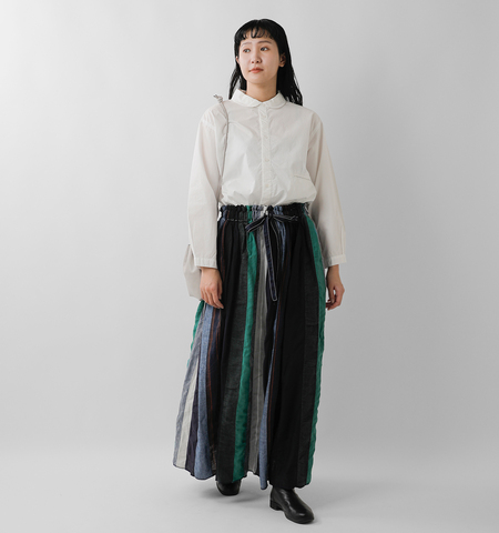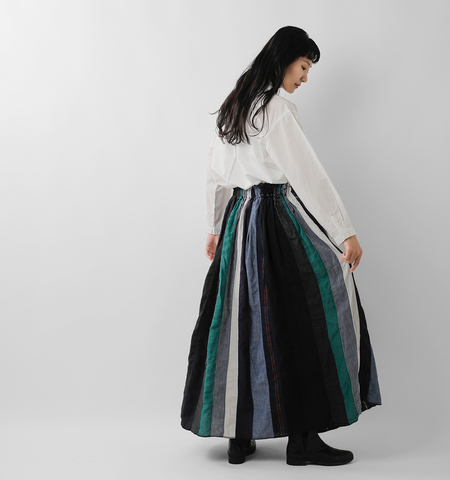 ARTE POVERA(アルテポーヴェラ)より、リネン コットンMIX ギャザー スカートのご紹介です。綿と麻の素材をストライプ上のパッチワークで作り出したギャザースカート。毎シーズン、パッチワーク、色目を変えてリリースしているアイテムになります。軽やかに揺れるシルエットは、歩くたびに表情を変え、着こなしに華やかな動きをプラス。ふんわりと広がるギャザーが女性らしい印象で、アルテポーヴェラらしい一枚です。