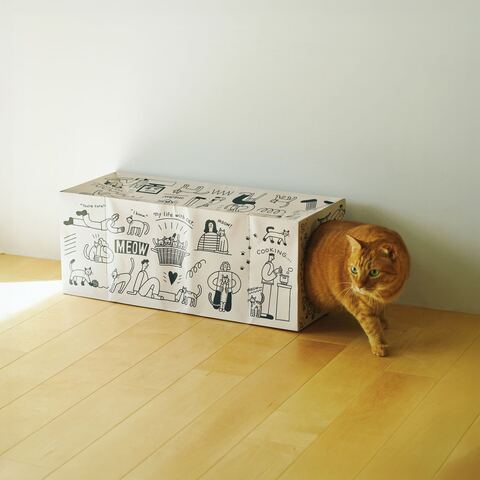 ネコとの暮らしにある、なにげなく愛しい瞬間。このネコトンネルには、そんなシーンを切り取ったアートワークが贅沢にも全面にプリントされています。