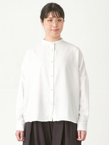 D*g*y|バンドカラー前後差ブラウス 綿ビエラストライプ D9707
