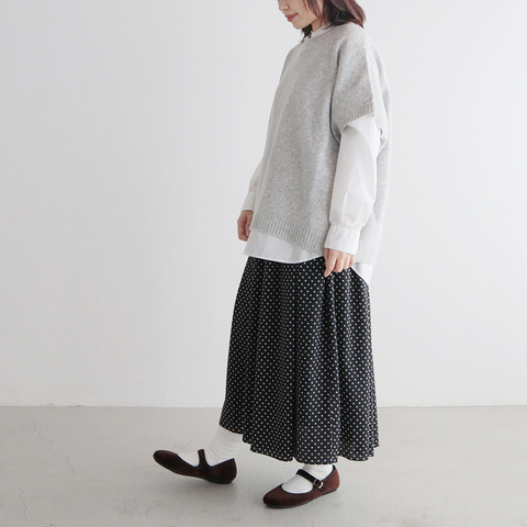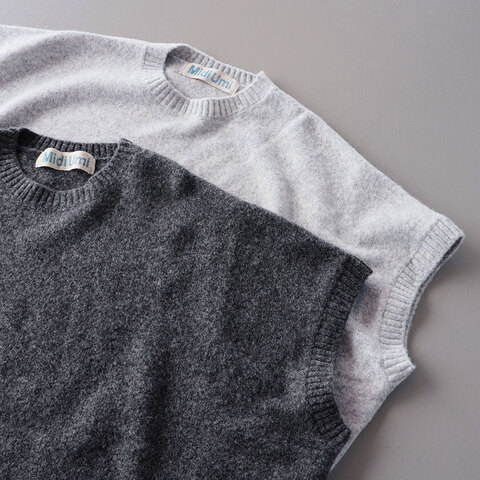 秋冬のレイヤードスタイルに重宝する「MidiUmi (ミディウミ)」のニットベストのご紹介です。