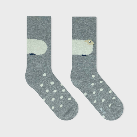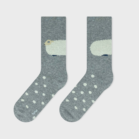 雪原に暮らすひつじが靴下の絵柄に再現されました。