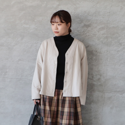 Meaux|ウール ブレンド ボタンレス ニット カーディガン mxf253002