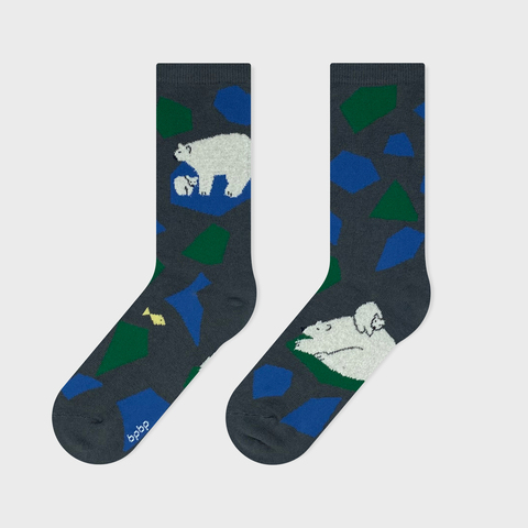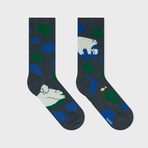 流氷の上に佇むシロクマの親子が、靴下の絵柄に再現されました。