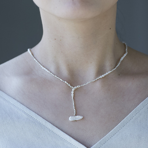前後で楽しむ、淡水パールとカレンシルバーのネックレス。