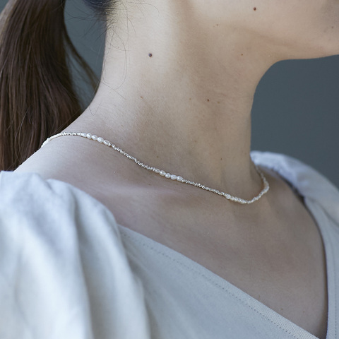 細やかな粒を紡いだ、軽やかで繊細なネックレスです。