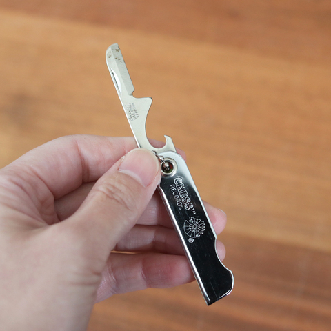 高品質なクローム仕上げに、ナイフと栓抜きを内蔵しています。