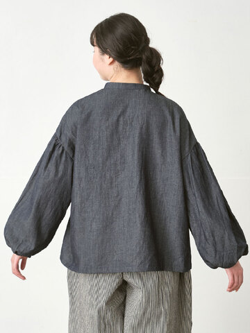 D*g*y|前フリルバンドカラーブラウス 綿麻オックス D9748