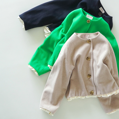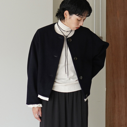 裾や袖口から覗くフリルのような裏地が、さりげなく女性らしさを演出。身幅やアームホールはゆとりを持たせており、厚手のニットやワンピースの上からもストレスなく羽織ることができます。