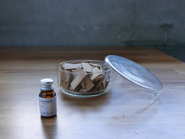 ウッドチップをガラスや陶製のお皿や容器に入れて、お部屋の片隅に置くだけで、インテリアとしても楽しみながら、天然の優しい香りを感じていただけます。