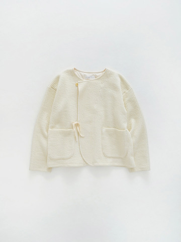 ふっくらとした優しい肌触りの生地感です。ウールのカーディガンやジャケットがあまり得意でない方に一度試して頂きたい、オススメアイテムです。