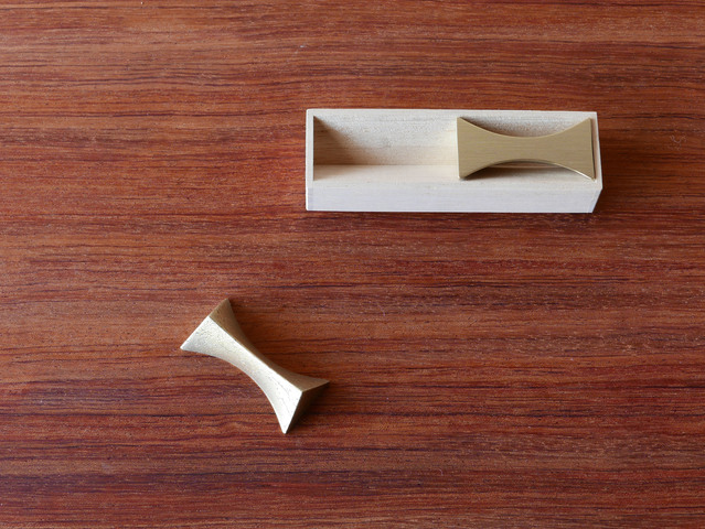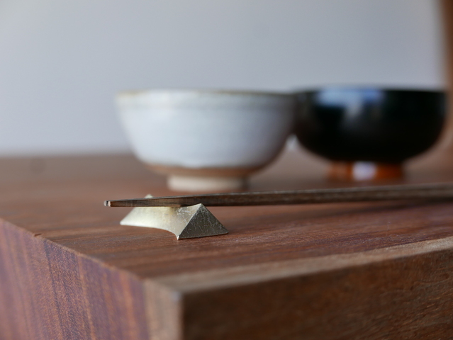 そんなFUTAGAMIの、きらめく「光」をイメージし鋳肌を活かして形作られた、真鍮の箸置き。