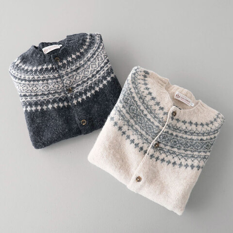 素材にはシェットランド諸島を原産とするシェットランドウールを使用。シェットランド種の羊毛は英国内で最も軽く柔らかいことでも知られており、毛の1本1本にハリがあるのが特徴です。