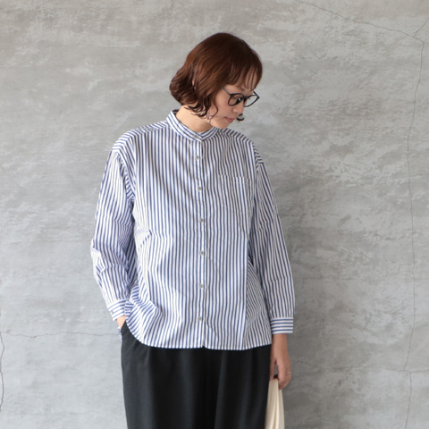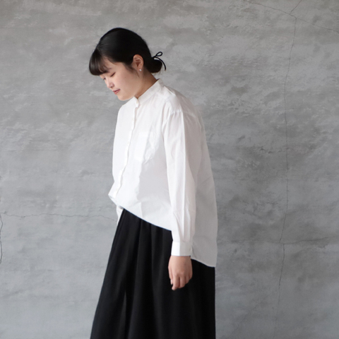 sabbatum|メランジドライツイルストレッチバンドカラーオーバーサイズシャツ