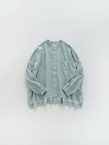 起毛感のあるコットンネル素材で仕立てたシャツ。秋冬にぴったりな温かみのある雰囲気です。一見単色に見えますが、生地を織り上げる際に異なる色の糸を使用しているため、奥行きが生まれ味わい深い表情になっています。
