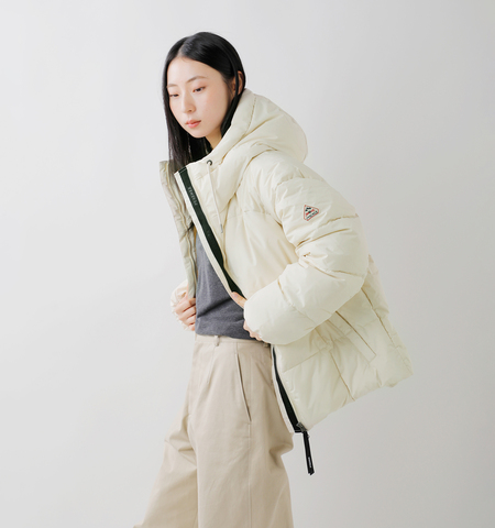 PYRENEX(ピレネックス)より、アルモニ フード ショート ダウンジャケット をご紹介します。「アルモニ」は身体を包み込むようなフォルムで、軽くて快適な着心地と暖かさを兼ね備えたショートダウンジャケットです。高めに設定された襟、ドローコードがついた大きめなフード、ボリュームのあるダウンフィリングを活かしたキルトステッチがデザインポイントとなっています。また裾に取り付けられたドローコードを調節することで丸みのあるシルエットになり、異なった表情もお楽しみ頂けます。