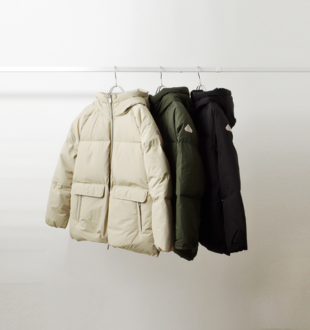 ミドル丈で裾にかけてややテントラインに仕上げることでスポーティになりすぎない印象に仕上げています。フロントのフラップポケットにはサイドに独立したジップポケットが付属、それぞれフリースライニングを用いているのでハンドウォーマーとしても役立ちます。
