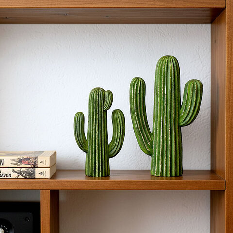 思わず微笑んでしまうようなフォルムの、サボテンをモチーフにしたオブジェ。インテリアに取り入れるだけで、癒しを感じるグリーンカラーと、どこか人間味のある愛らしい姿が空間をやわらかくしてくれます。