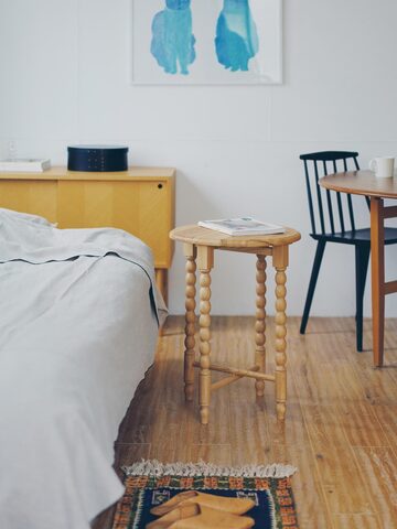 パタンと手軽に折り畳めるので、使わない時は家具の隙間など空いたスペースに収納できます。軽やかに移動でき、暮らしに美しくなじむ小家具です