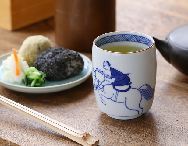 上出長右衛門窯|湯呑 笛吹 ヘビ使い