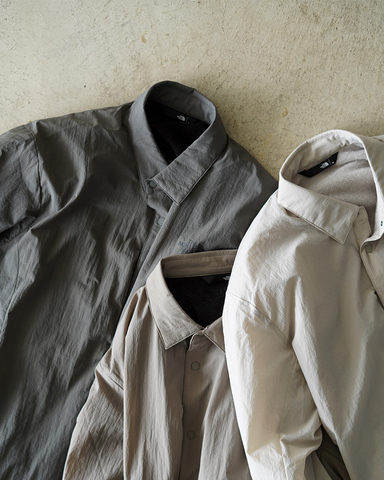 ウール素材の登山シャツから着想を得た、ソフトシェルシャツ。ライトアウターとしても使いやすい軽くて薄めの素材ながら、しっかりと暖かく軽快に動けるのが特徴。
