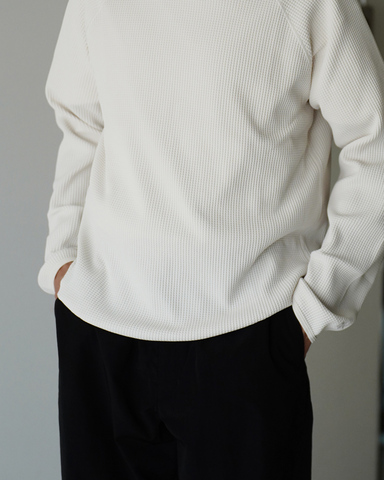日常からアウトドアまで、シーンを選ばず着られる軽快なロングスリーブTシャツ。ほどよい膨らみを持つサーマル生地を採用しながらも、驚くほど軽やかな着心地を実現しました。