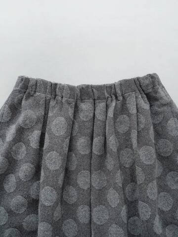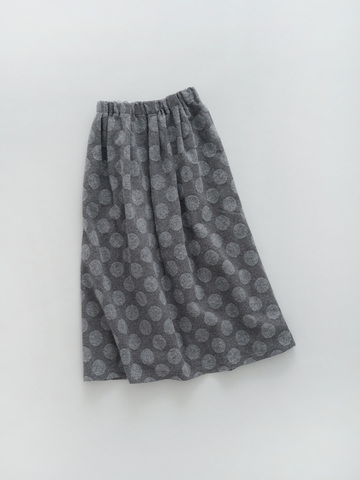 ウール混でふっくらと温もりのある風合いのスカート。ベースの生地と同色系のドットの配色が、シックな雰囲気になっています。起毛感のある生地で仕立てることにより、ドット柄がより馴染み、普段柄物を着ない方にもおすすめの1着です。