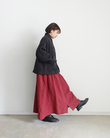 ボタンの留める数で裾の広がり方やシルエットバランスのアレンジもできます。