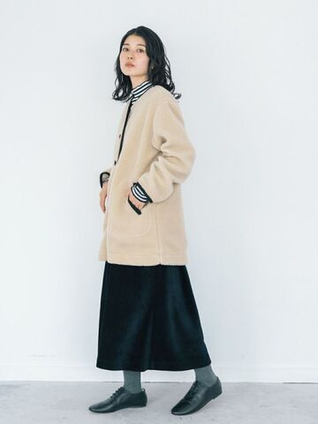 ふんわり軽やかなシープボア素材で、気軽に羽織れるあたたかコート。