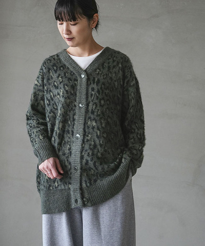 ichi|Knit Cardigan + Leopard Inner Down Vest ニットカーディガン+レオパードインナーダウンベスト レディース アウター 2点セット/保存袋付属 250471