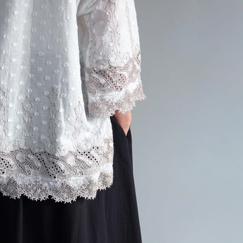 marble SUD|EMB swag(綿) パフブラウス