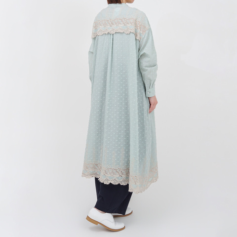 バックスタイルにあしらったラッコレースが、装いにさりげない華やかさを添えるシャツワンピース。