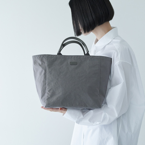 特殊な加工により、「軽量」「自立性」「撥水性」の機能性があるナイロン素材を使用した”SHRINK NYLON”シリーズ。ドライタッチでナチュラルな風合いは、どこか上品な印象を与えてくれます。