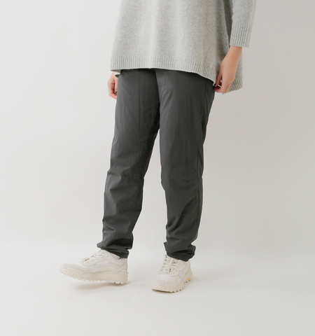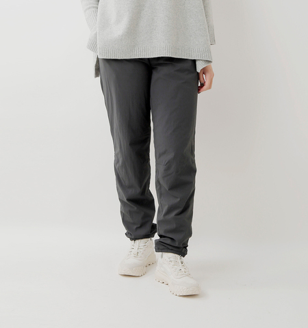 裾部分はゴムギャザーで足首へのフィット感プラス。また、裾部分には裏地を配していないので、アクティブな動作時にも引っ掛かりにくく、快適に着脱できます。