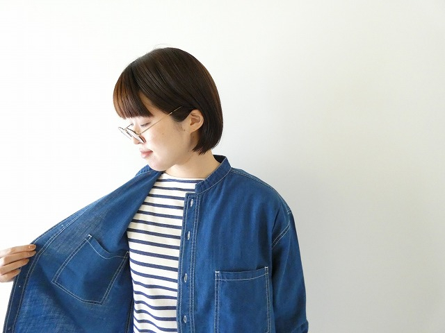 ゆとりのある身幅に対し、ややコンパクトな着丈とすっきりとして見えるバンドカラーのデザインでバランスを整えました。様々なボトムと相性がよく、着回しのきくアイテムです。