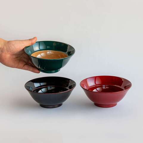 うるしが塗られている素地は木粉と樹脂をあわせたもの。陶磁器と比べて保温性に優れているから、スープ等温かいものにも適しているわけです。