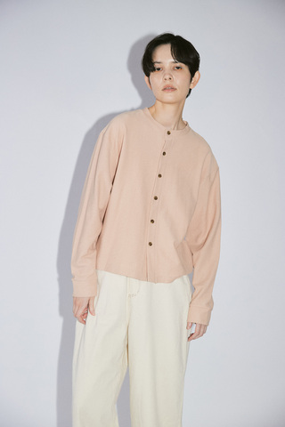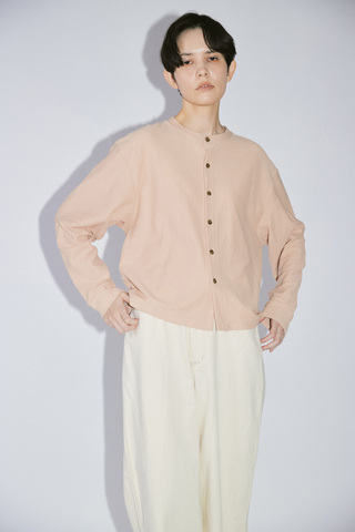 毛羽立ちを抑えた上質な糸による、なめらかな肌ざわりが心地よい釦開きカットソー。シンプルながらも品のある表情に仕上げました。