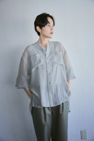 レーヨンのとろみと麻の素朴な風合いをバランスよくブレンドしたシアーシャツ