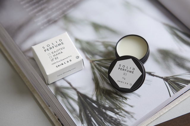 SHINCOQのソリッドパフュームは、贅沢に天然素材のホホバオイルとアプリコットオイル、100%天然エッセンシャルオイルを使用した、自分の為の練り香水です。